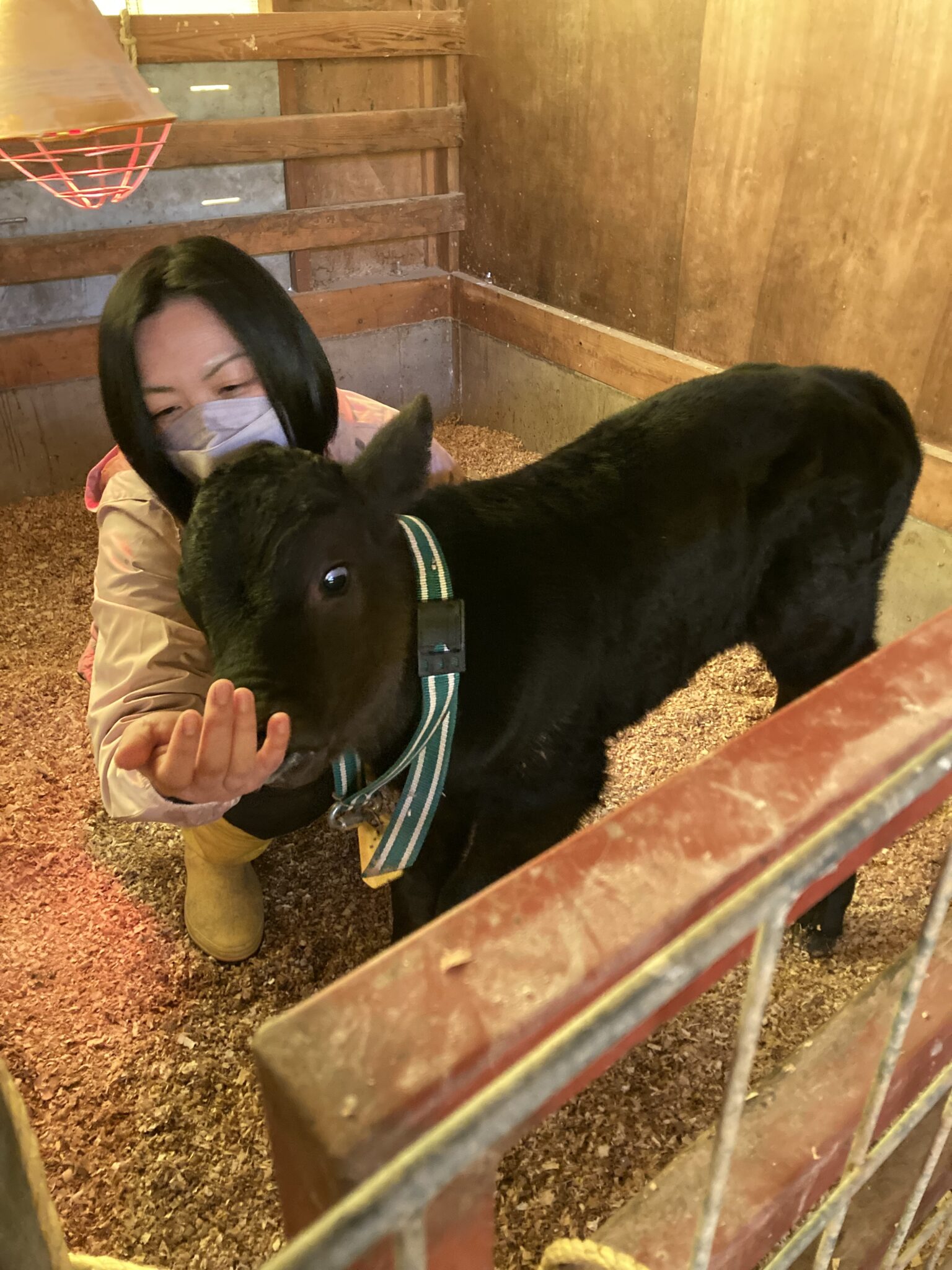 太らせるという意味ではなく、骨格を大きくして体重を乗せる。うちは4ヶ月で出荷なので、この時期は骨格がしっかりしていて、余分な肉がついていないスッキリとした牛が理想ですが、それだと高く売れません。健康な牛と高く売れる牛はイコールじゃないので、そこがとても難しい。ミルクやエサの量を工夫して、なるべく安定して健康な牛を育てていきたいです。
